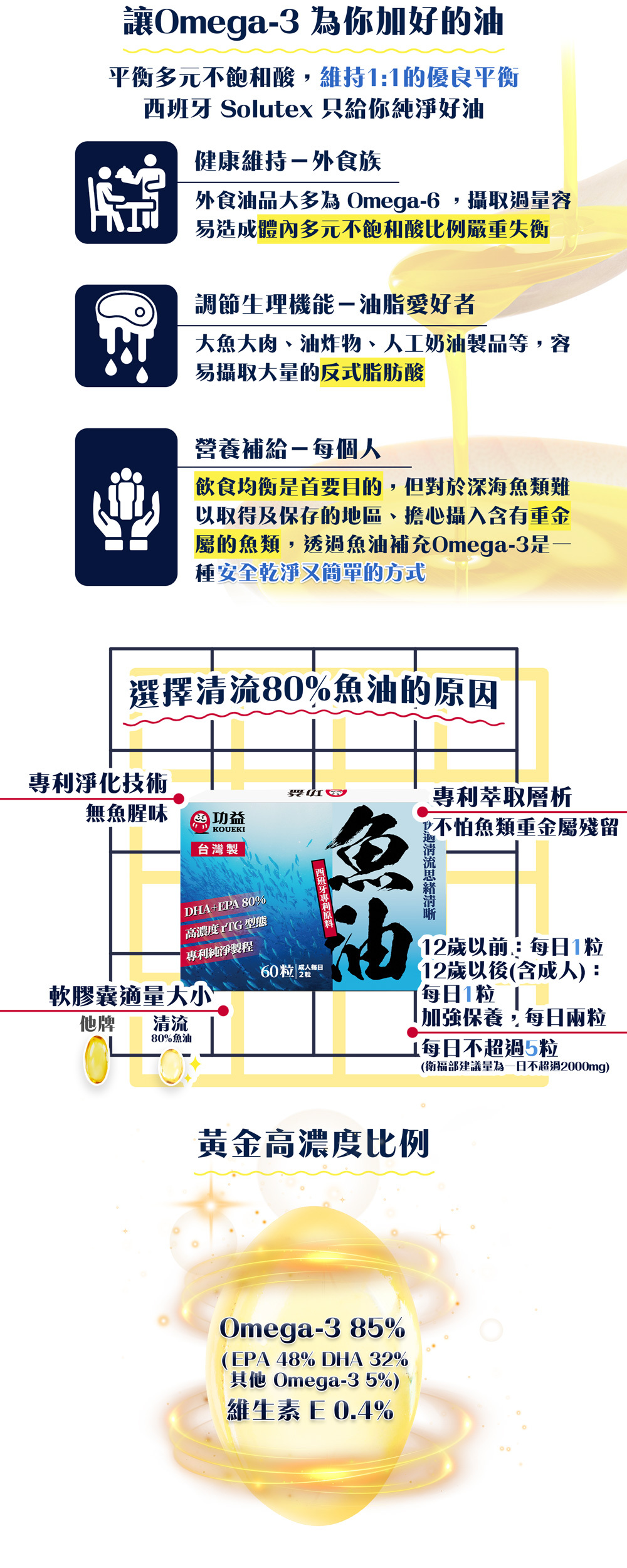 \\西班牙 Solutex 魚油成份,Omega-3 超過 80%//