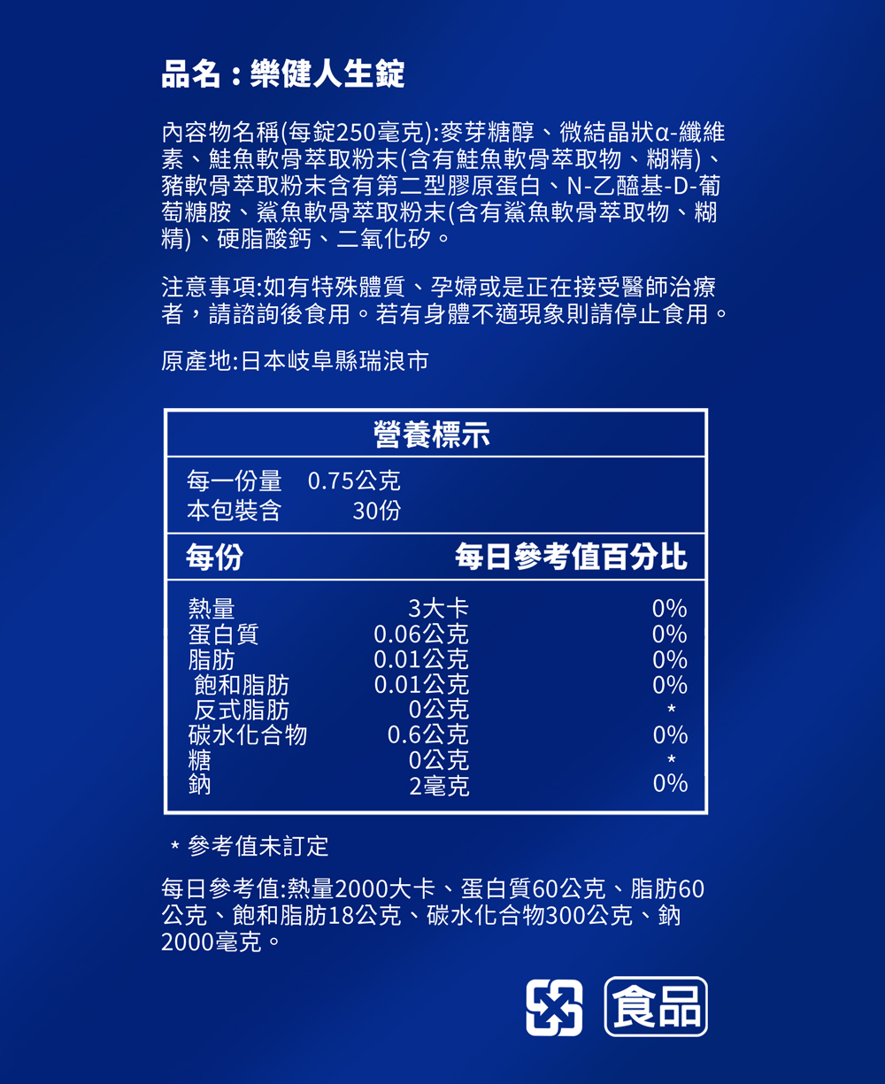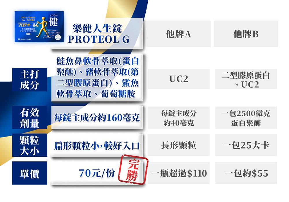 主成份足量添加 169 毫克,每日三錠輕鬆走跑跳