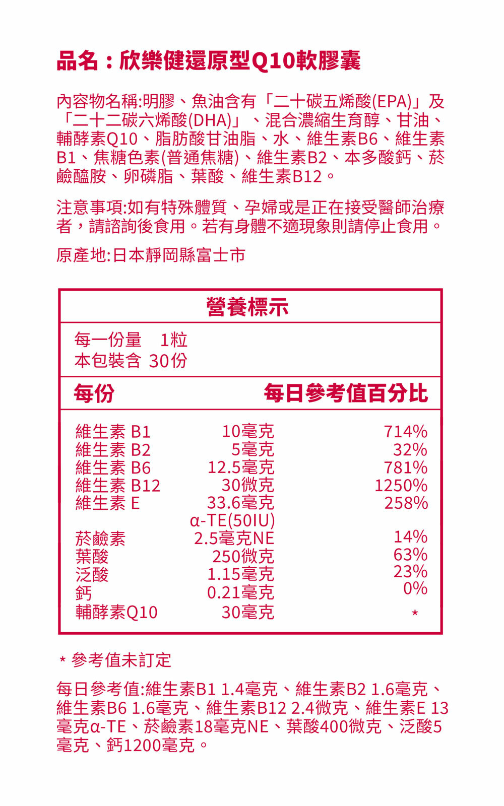 ➤ Q10 原料來自日本大廠 Kaneka® 有感添加 30mg