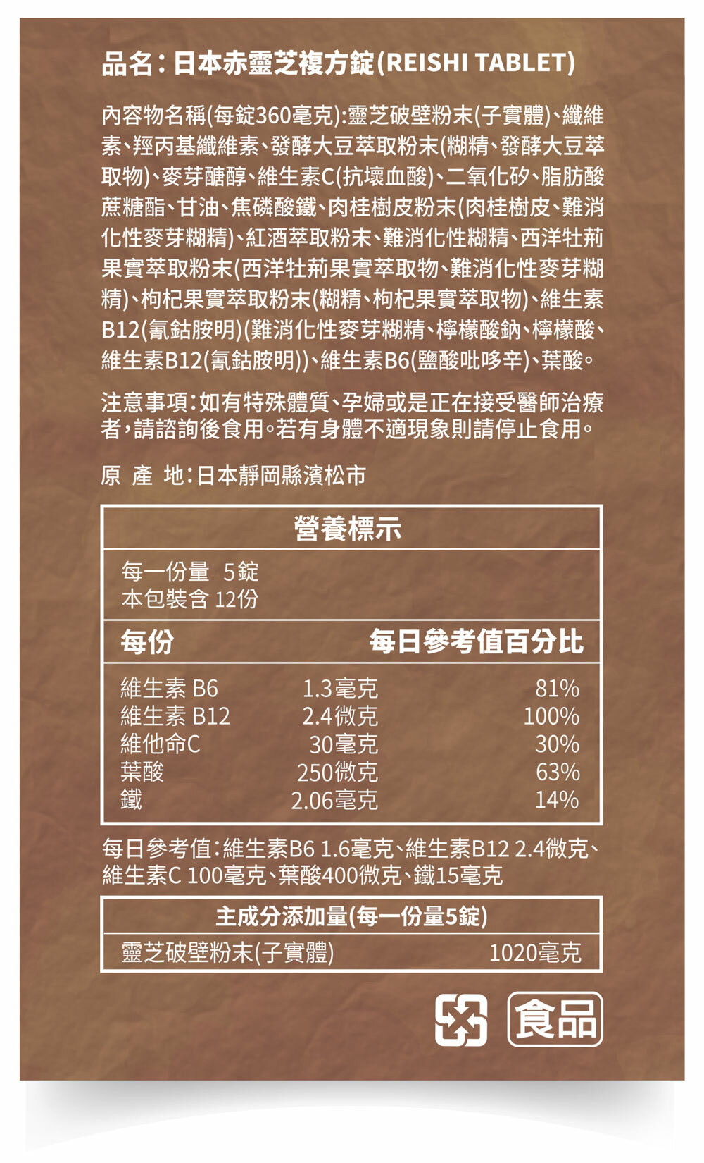 ➤國內含有最高含量(每錠 123.12 mg)多醣體的靈芝保健品